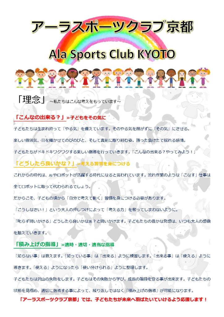 私たちは、子どもたちが安心してスポーツを楽しめる環境作りを行っていきます。